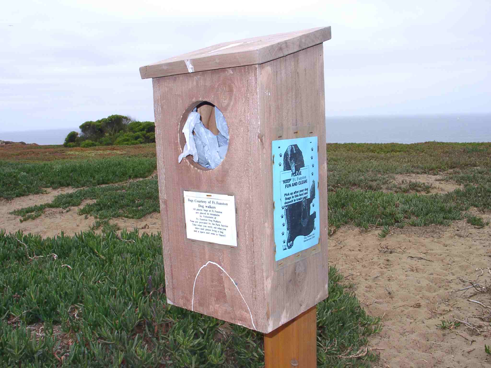 09090025.jpg A dispenser for baggies to allow people to clean up after their dog.